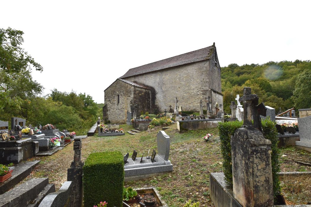 L'église appartient au prieuré voisin de Molières. Petit édifice à nef unique, terminé par un choeur voûté en cul de four orné de peintures gothiques. Sur la voûte de l'abside se voit un Christ d'aspect byzantin montrant ses plaies et entouré du trétramorphe, attribué au 13e siècle. Sur les murs, datant vraisemblablement du 14e siècle, se trouvent à droite l'Annonciation, à gauche les rois mages portant leurs présents à l'Enfant Jésus. Deux chapelles donnent à l'église la forme de la croix, avec des fresques visibles sous l'enduit du transept sud. L'ancienne entrée se situait au sud.