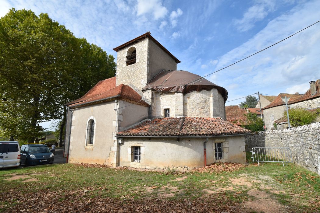 Epoque romane : choeur et croisée du transept, quatre colonnes et leurs chapiteaux sculptés, fenêtre du côté nord de l'église donnant accès aux combles et au clocher. Le clocher quadrangulaire s'élève sur la croisée du transept. Les murs est et ouest du clocher sont à pans de bois avec garnissage en pierres, briques et mortier.