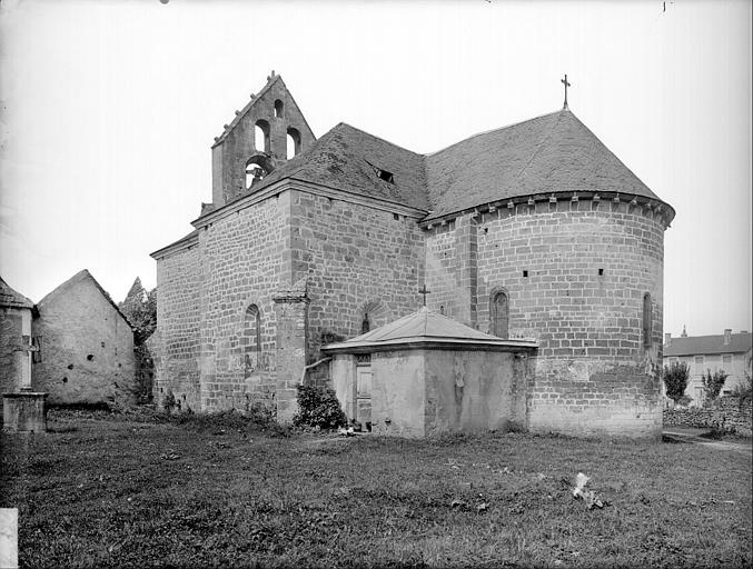 Hormis l'abside qui est romane, le reste de l'édifice semble remonter au 15e siècle. Clefs et retombées d'arcs sculptées. La façade est garnie de mâchicoulis et surmontée d'un campanile percé de cinq arcades superposées ajourant le pignon. Un escalier dans une tourelle polygonale permet d'atteindre le rang de mâchicoulis et le bas du pignon. Restes de peintures murales.