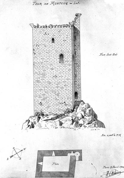 Cette tour était le donjon d'un système de défense dont il ne reste plus que quelques débris de remparts. Montcuq faisait partie du vicomté de Toulouse, et était l'une des places que Raymond, vicomte de Toulouse, s'était engagé à démanteler, d'après le traité passé entre lui et le roi de France. Les remparts de la ville furent détruits. La tour a été privée de ses mâchicoulis, de ses créneaux, des marches de son escalier et de deux planchers intermédiaires. L'intérieur de la tour-donjon de Montcuq a été restauré en 2009 sous le contrôle des Bâtiments de France. La voûte en berceau effondrée au-dessus du premier niveau a été rebâtie et des planchers en chêne ont été posés aux troisème et quatrième niveaux. Une exposition permanente historique ("Histoire d'une tour") est installée aux troisème et quatrième niveaux de l'édifice.
