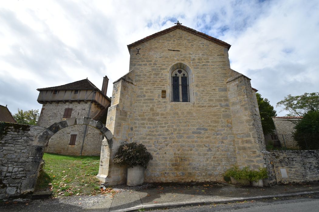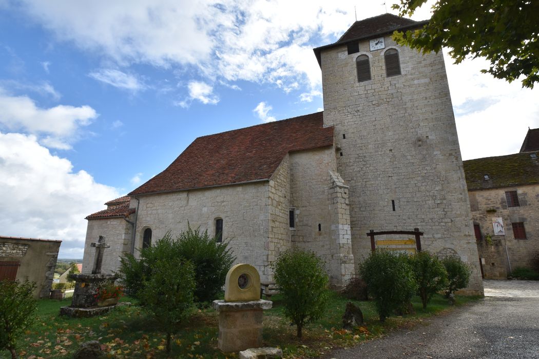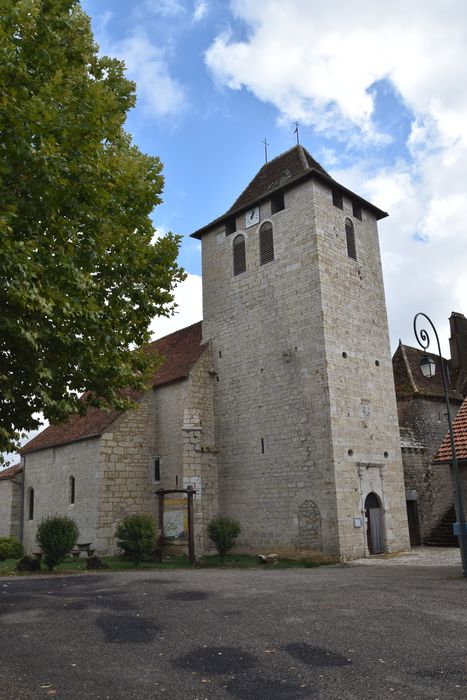 La première partie de la nef est tout ce qui subsiste de l'époque romane dans ce monument. La façade occidentale est plus récente. Au 14e siècle, une nef et un choeur terminés par un mur droit ont été bâtis dans le prolongement de la nef romane, avec une largeur plus importante. Des chapelles ont été ajoutées au 15e siècle. Presbytère du 15e siècle, avec grenier en pans de bois et couverture en lauzes. Dans le choeur et la nef, les murs sont couverts de peinture à la détrempe représentant l'incrédulité de Thomas, la descente de croix, le voeu hommage d'un chevalier de Malte au seigneur, le Christ jardinier et la Madeleine, la mise au tombeau, l'ascension.