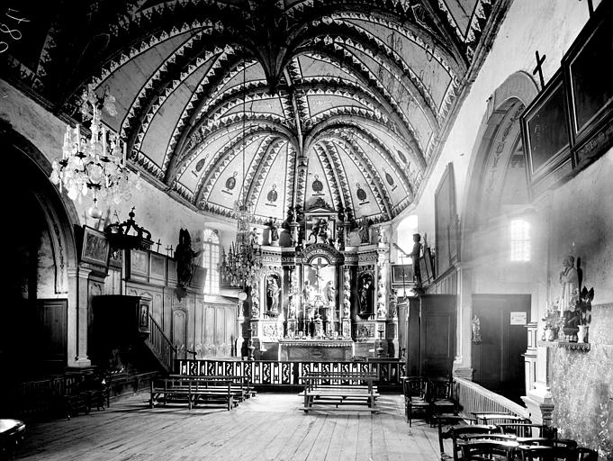 De l'église du 16e siècle se distingue l'imposante tour barlongue et son clocher-forteresse qui, avec ses contreforts d'angle, sa flèche, ses quatre clochetons polygonaux et ses baies est l'un des plus typiques de cette vallée. Il couvre tout le fond de la nef, terminée par un chevet à pans coupés. Construction de la voûte à bardeaux de bois peints et clés pendantes, en 1776. Sacristie et lambris en 1777.