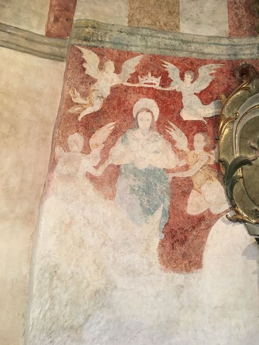 Petite église romane à clocher-pignon augmentée au 16e siècle par une chapelle gothique et un portail d'entrée. Elle est décorée de peintures murales superposées des 13e et 16e siècles.
