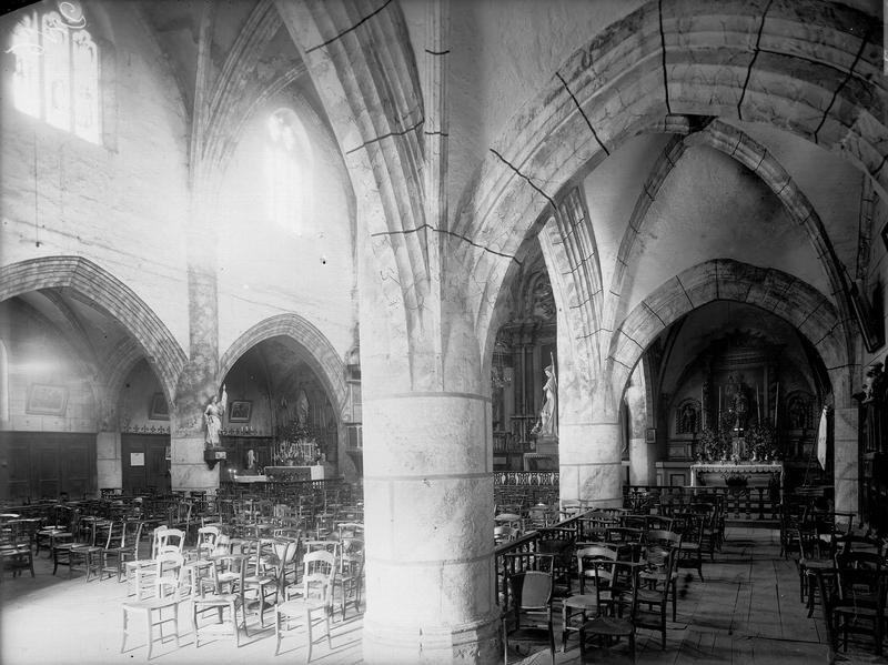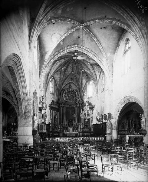 Eglise construite de 1540 à 1549 à l'emplacement d'un édifice plus ancien. Elle se compose d'une nef de trois travées avec bas-côtés, éclairée par des fenêtres à deux lancettes, le tout voûté sur croisées d'ogives. Les arcs doubleaux sont supportés par des piliers cylindriques terminés par des moulures formant chapiteaux. Les doubleaux bas et les arcs des bas-côtés pénètrent dans les cylindres suivant la mode introduite au 15e siècle. L'entrée, à la base de la façade ouest, se faisait par deux portes. Au-dessus de l'entrée, une vaste tribune occupe presque toute la première travée. L'accès à cette tribune se fait par un escalier léger en spirale pris en partie dans le mur de façade, tandis qu'un escalier de pierre, dans l'épaisseur du contrefort nord-ouest, permet d'accéder aux combles. Le choeur pentagonal est couvert par une voûte plus riche, à liernes et tiercerons, et peinte. Un retable du 18e siècle en bois sculpté, peint et doré, orne le choeur.