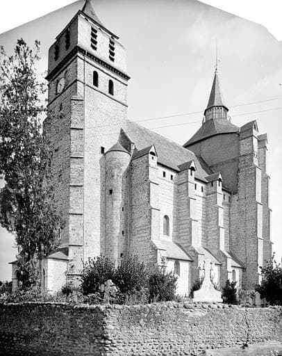 Nef du 14e siècle, flanquée de chapelles suivant une disposition à la Bigorre. Le chevet présente des caractères du 15e siècle. Le clocher n'est pas antérieur aux guerres de Religion. Au sommet des murs gouttereaux, les galeries rappellent l'affectation militaire de cette construction pendant les guerres de Religion. Des lambris avec stalles occupent le choeur. L'édifice est construit en galets d'Adour alternant avec de la brique. Le parement extérieur des contreforts ainsi que les voûtes sont en briques. Charpentes en chêne. Porche moderne en pierre dure.