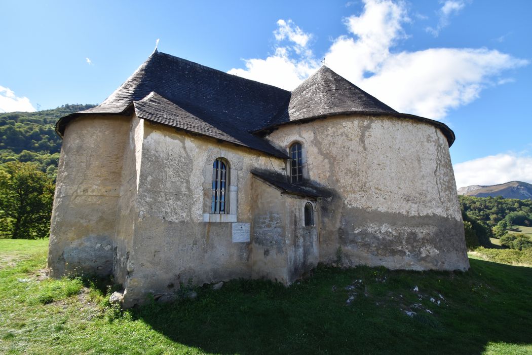 Une confrérie de Notre-Dame de Piétat est attestée dans cette chapelle dès 1493. Une partie de la chapelle est probablement antérieure au 15e siècle. La nef se termine par une abside semi-circulaire, avec deux chapelles de même abside, formant faux transept. La sacristie se place dans l'angle entre la chapelle sud et l'abside. Chapelles et nef sont couvertes d'ardoises. Deux portes latérales, sans doute du 16e siècle, au nord et au sud, ont été bouchées sans doute en 1755 lors de l'extension de la nef. A l'ouest se dresse un clocher à flèche octogonale, asymétrique. Une porte du 18e siècle en marbre, surmontée d'un édicule abritant une Pietà de terre cuite, perce la façade. A l'intérieur, voûtes peintes et retable. Au fond de l'abside, s'élève un autel-tombeau peint en marbre. La chapelle nord est la seule partie de l'édifice couverte en pierre, par une voûte en berceau semblant indiquer qu'elle est antérieure au 15e siècle. La chapelle sud aurait été construite vers 1740 et est couverte par une voûte formant un berceau de planches peint. Sur le mur nord de la nef, sous la chaire du 19e siècle, un reste de fresque peu lisible paraît dater du 15e siècle.