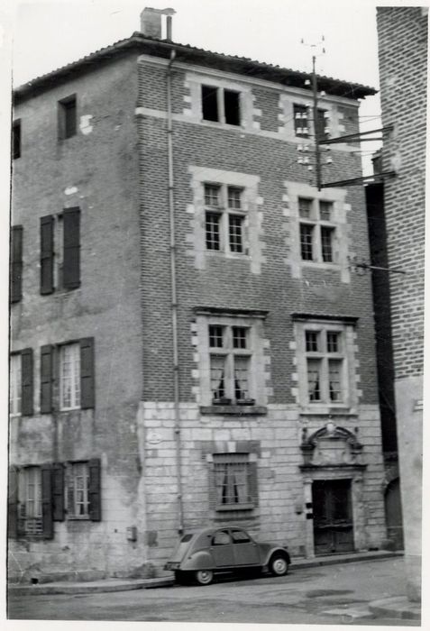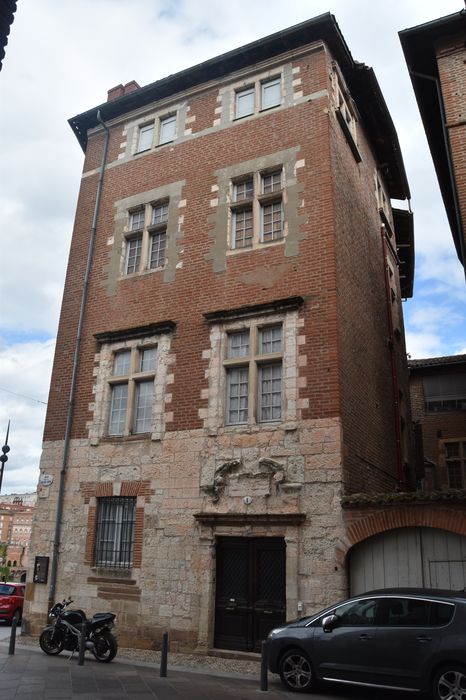 Au 14e siècle, le quartier de la rue de la Grande Côte était un fief du chapitre Saint-Salvi. Depuis sa construction, l'immeuble a subi quelques modifications. La façade sur la rue a été conservée sans changement, avec ses portes et fenêtres anciennes, de même pour la façade sur l'impasse adjacente. Le côté regardant le Tarn a été transformé, probablement lorsque la rue de la Dongue a été élargie pour continuer le quai Choiseul jusqu'au Pont vieux. L'impasse semble avoir été fermée par la construction d'une dépendance de l'édifice, par empiètement sur le prolongement de la rue d'Engueysses. A l'origine de la construction ont sans doute existé des accords avec le chapitre ou la ville pour des échanges de terrains. La porte d'entrée est rectangulaire, sous linteau appareillé à clef saillante en bossage trémoïde. Au-dessus d'un petit entablement à larmier droit, les prolongements des pilastres sont surmontés de balustres à boules, encadrant un fronton cintré qui repose sur deux volutes et qui est rompu en son milieu pour dégager un cartouche ovale. Le mur de façade en rez-de-chaussée est parementé en pierre d'appareil irrégulier. Le mur des étages est en briques. Chacun des deux premiers étages est éclairé par deux grandes fenêtres à meneaux croisés. Les pilastres latéraux saillants supportent un petit entablement droit, formant retours saillants au droit des pilastres.