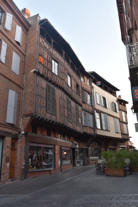 Les maisons protégées dans cette rue sont représentatives d'une architecture régionale. Elles sont à deux étages, en encorbellement l'un sur l'autre, le premier très avancé, le second beaucoup moins saillant et surmonté d'un galetas en clair-étage, dénommé "souleilhé". Les façades sont en pans de bois, à croisillons garnis de briques posées tantôt horizontalement, tantôt obliquement. Le n°8 conserve une rampe d'escalier portant la date de 1601. Ces maisons sont de la même époque et représentent le type "moyen" des maisons d'Albi à la fin du 16e siècle. L'une d'entre elles a conservé les sculptures de ses pans de bois.