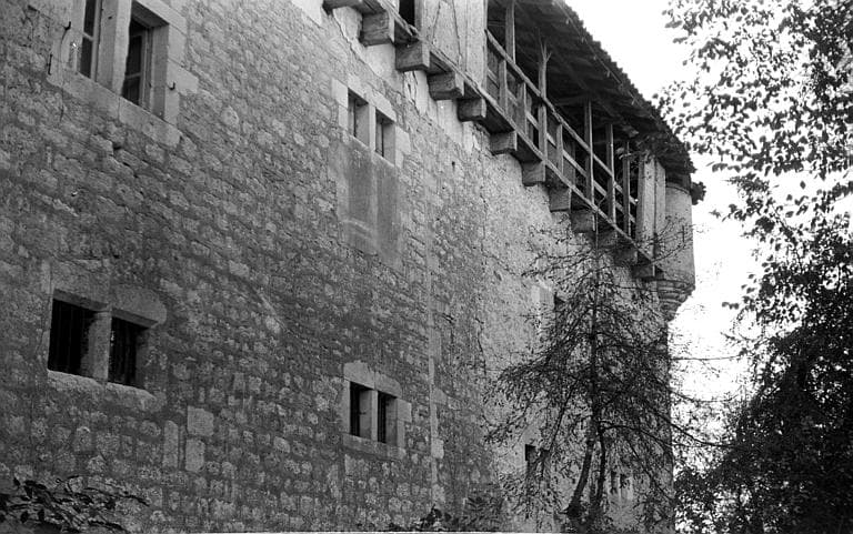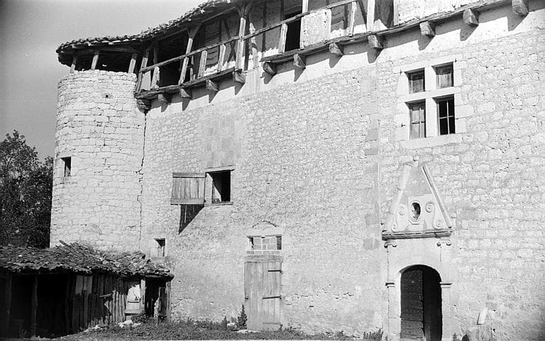 Le style de la construction accuse le 17e siècle, avec certaines parties pouvant remonter à la fin du 16e siècle. C'est un grand bâtiment rectangulaire, flanqué de trois tours : l'une ronde à un angle, l'autre polygonale à l'angle opposé, la dernière ronde et encorbelée. Ce rectangle se compose de deux parties, non liées entre elles. D'un côté, une partie comprenant l'escalier, plusieurs salles et la tour d'angle polygonale ; de l'autre, la partie qui peut être la plus ancienne, comprenant des pièces et les tourelles d'angle circulaires. L'élévation présente trois niveaux avec, en surplomb, une galerie en pans de bois, avec colombage en croix de Saint-André, formant un chemin de ronde abrité tout autour de l'étage supérieur. Le portail est en anse de panier, avec pilastres moulurés se prolongeant au-dessus de l'arc pour se terminer par des chapiteaux ioniques. L'entablement est surmonté d'un fronton triangulaire rompu, flanqué de boules. Le tympan est percé d'un oculus. A l'intérieur, le premier étage conserve une cheminée sculptée dans la pierre et abondamment ornée : deux grands personnages aux montants, un médaillon soutenu par deux anges au linteau. La hotte s'orne d'un personnage soutenant une colonne inclinée et d'un personnage en cotte de mailles tenant une lance ; au centre se trouve un grand tableau sans décor. Des anges sont assis sur son encadrement, le tout est complété par un luxuriant décor de feuillage, torsades et denticules. Dans les pièces, présence de plafonds peints (décor géométrique, médaillons...). Près du château se trouve un pigeonnier sur quatre piliers circulaires, avec charpente à embouts sculptés.