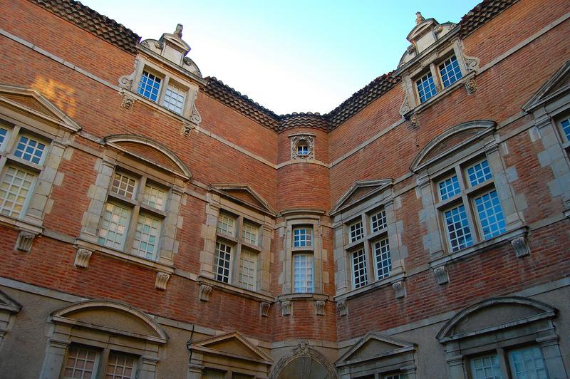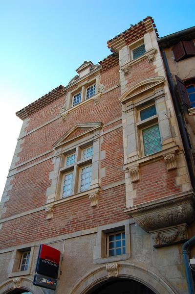 Edifice Renaissance, bâti sur le plan classique des hôtels particuliers du milieu du 16e siècle avec trois corps de bâtiments d'égale importance bordant les trois côtés d'une cour d'honneur carrée dont le quatrième carré, sur rue, est fermé par un mur dans l'axe duquel s'ouvre un portail monumental. L'ordonnance des trois façades sur cour est semblable : rez-de-chaussée éclairé par trois fenêtres à meneaux et croisillons ; pilastres, corniches et frontons. Sur l'aile droite, une porte monumentale décorée de doubles pilastres, corniche, fronton coupé, cartouche sculpté, est placée dans l'axe, répond aux fenêtres des autres faces et donne accès aux intérieurs. L'étage noble est également percé de fenêtres à meneaux et croisillons. Les allèges, les murs, les remplissages sont en brique apparente avec joints "à ruban". Un étage plus bas couronne l'édifice, éclairé par une seule fenêtre à meneau central, sans croisillon. Des tourelles en 1/4 de cercle, montant sur trompes depuis le plancher du premier étage, occupent les angles du fond de la cour. Une tour belvédère surmonte le toit de l'aile droite et rappelle les traditions de la Renaissance italienne. Sur rue, la face de l'aile droite est décorée sur son côté droit d'une logette rectangulaire montant en encorbellement depuis le plancher du premier étage. La construction des façades sur rue est identique à celle des façades sur cour. Le portail monumental sur rue, en plein cintre, est flanqué de doubles pilastres à bossages et couronné d'une corniche avec frise, fronton coupé et motif central dont il ne reste que l'amorce.