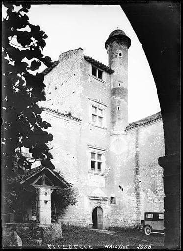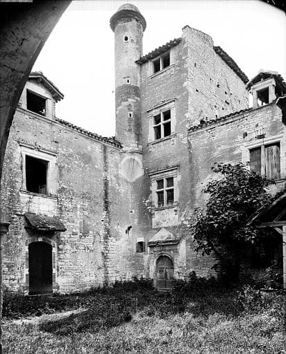 Edifice presque carré, flanqué à chaque angle par une tour. La cour centrale est décorée, sur un côté, par cinq arcades en plein cintre et, du côté opposé, par une porte en plein cintre surmontée d'un fronton avec écusson et moulures. La cage d'escalier rectangulaire est flanquée d'une tourelle et se continue de quelques mètres au-dessus du toit. L'escalier est à doubles volées, avec paliers voûtés d'ogives à arêtes saillantes. Les tours sont percées de meurtrières et sont percées, à la base, d'embrasures pour petite artillerie. A l'extérieur, vestiges de fossés et d'un ouvrage avec porte garnie de meurtrières.