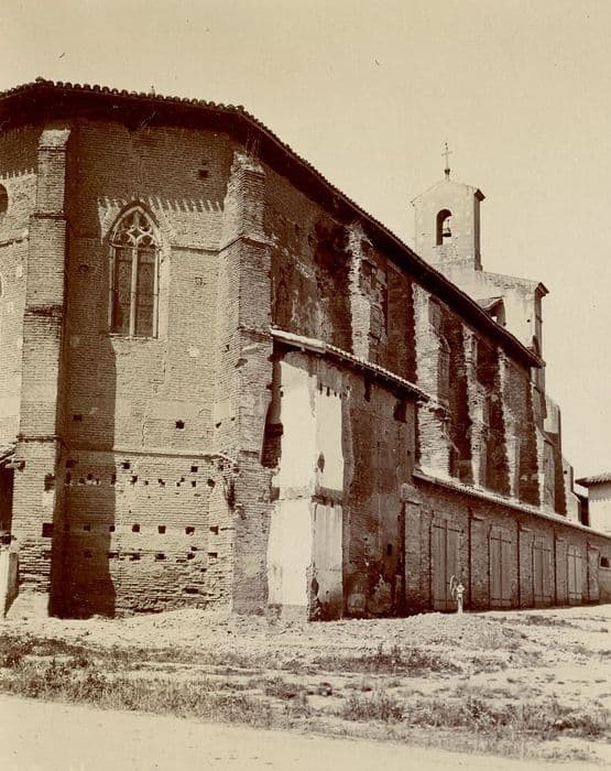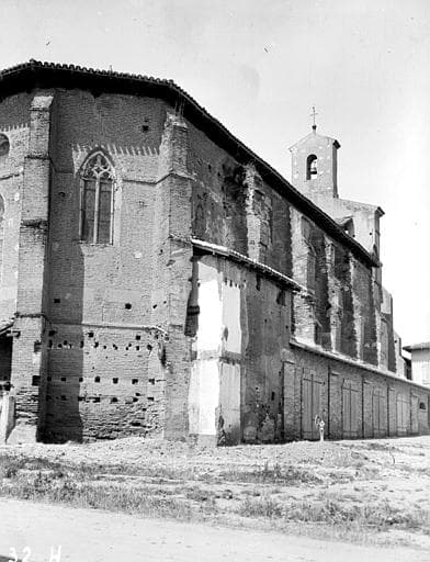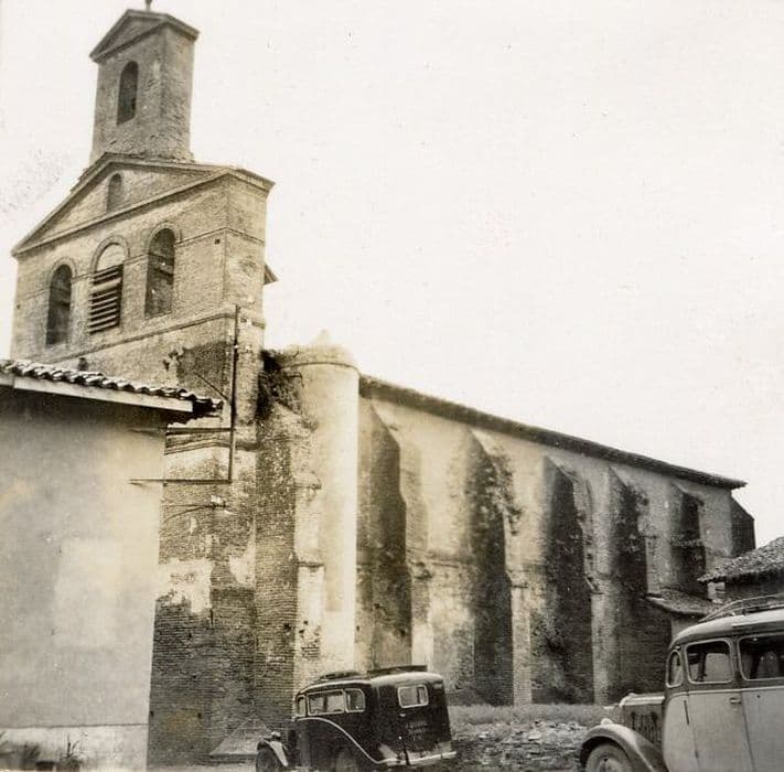 L'église remonterait au 13e siècle mais a subi plusieurs transformations au cours des siècles : clocher construit en 1527 et restauré en 1698 ; charpente et couverture refaites en 1461. De l'église primitive du 13e siècle ne subsiste que le portail en briques. L'édifice actuel, remontant au 16e siècle et construite entièrement en briques, est à une seule nef terminée par un chevet à pans coupés. A gauche du choeur se trouve une chapelle, et deux à droite. Chapiteaux historiés.