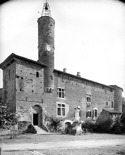 Le village était la propriété de Moissac. Il passa à la fin du 13e siècle aux mains de la famille Cardaillac qui y bâtit un château et une chapelle. En 1346, le château est attaqué par le Prince Noir. Par la suite, il le fut par les Réformés. Deux ailes en angle droit sont cantonnées de tours rondes, fermées autrefois au nord et à l'est par des remparts. Les défenses étaient assurées par des fossés et par l'Aveyron au sud. L'ensemble est dominé par une tour cylindrique couronnée d'un campanile en léger encorbellement par rapport à la maçonnerie de l'aile ouest. L'accès se fait sous la tour par un porche. Ouvertures à meneaux et fenêtres géminées. A l'intérieur, au premier étage, se trouve la salle des Preux, entièrement ornée de peintures murales du 16e siècle évoquant les neuf Preux dont les noms figurent sur des banderoles. L'étage des combles conserve encore visible la trace d'un crénelage. La chapelle occupe l'extrémité du bâtiment nord. Elle est décorée de peintures murales du 14e siècle relatant des scènes de la vie du Christ sur deux registres inscrits dans une architecture. Elle fut reconstruite à partir d'un édifice roman. Dans la cour intérieure, le donjon a été abattu vers la fin du 19e siècle.