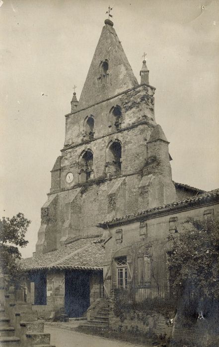 L'église du 12e siècle fut brûlée entièrement durant les guerres de Religion et démolie jusqu'aux fondements. Le cardinal Villaret de Joyeuse fit reconstruire une partie de l'édifice. L'édifice est bâti en briques. Le clocher est constitué d'un mur à cloches soutenu par des contreforts. Ce clocher pourrait dater du 14e siècle mais a été très restauré en 1721. Il est précédé d'un porche avec deux escaliers symétriques descendant au niveau du sol de l'église.