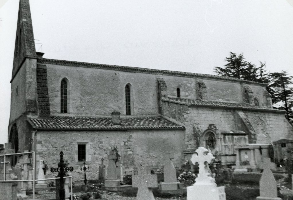 Un premier édifice existait, probablement dès le 12e siècle, qui faisait partie du diocèse de Cahors. Ruiné lors des guerres de Cent ans, il fut reconstruit vers 1500. Une nef unique de quatre travées aboutit à un choeur avec chevet à trois pans, éclairé par cinq fenêtres. Choeur et nef sont couverts de croisées d'ogives évidées. Cinq chapelles s'ouvrent sur la nef, voûtées d'ogives. Le portail et les remplages flamboyants sont néo-gothiques. Les restes du portail primitif à voussures se voient à la porte droite de la première travée. A la deuxième travée, côté droit, subsiste un enfeu en anse de panier. A la deuxième travée, l'arc de la chapelle latérale se reçoit sur des chapiteaux sculptés (animaux, scène de chasse...). Dans le choeur, remploi de divers éléments de boiseries du 17e siècle, provenant sans dout d'un retable.