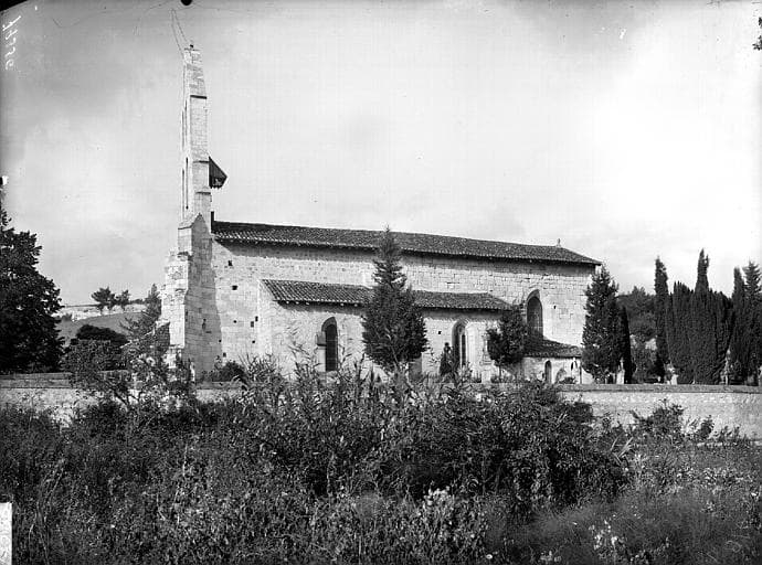 Eglise du 15e siècle, dominée par un clocher-mur à cinq arcades du 19e siècle. Décor peint du 19e siècle.