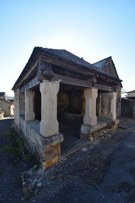 Petit édifice rectangulaire construit en pierres du pays. En élévation sur la place, de gros piliers aux angles chanfreinés, reposant sur une banquette en pierre, supportent les sablières de la charpente. Des murs pleins ferment le fond de la construction. La couverture en lauzes, posée sur un bardage jointif, est supportée par une charpente. Un cours de sablières, apparentes aux parties ajourées et noyées dans la maçonnerie à la partie supérieure des murs pleins, reçoit les petites fermes. Chacune de ces fermes comprend un entrait et deux arbalétriers s'assemblant à mi-bois et se croisant pour supporter les têtes des chevrons de fermes. Deux fermes d'arêtiers, un cours de pannes et le chevronnage complètent ce système primitif de charpente.