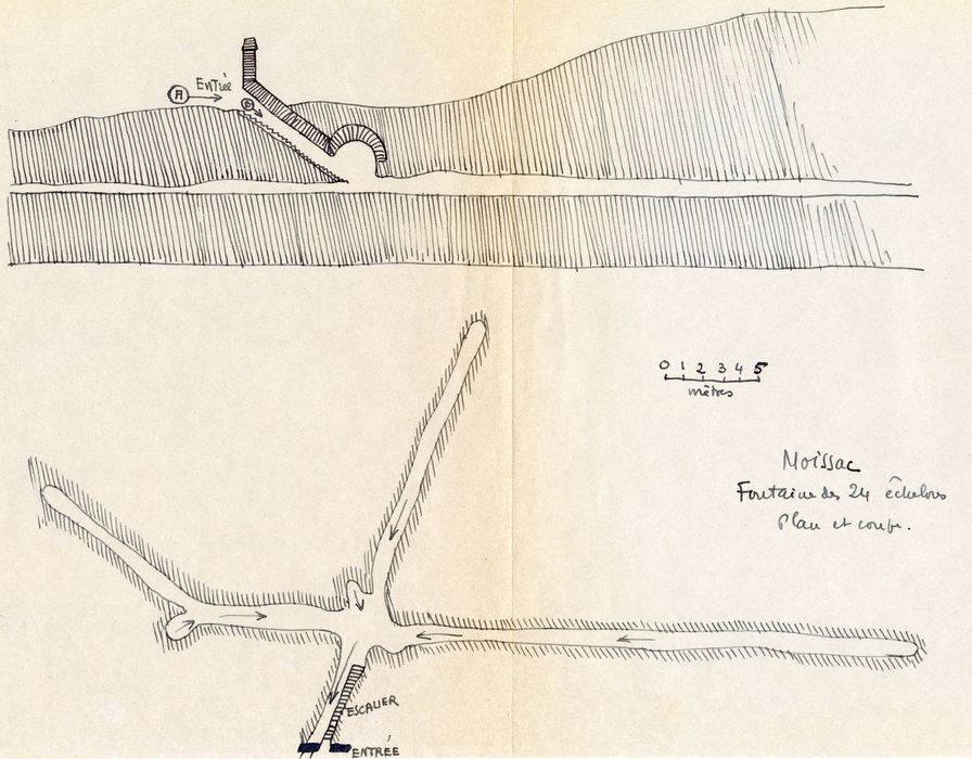 Ancienne fontaine souterraine avec édicule d'entrée et galeries de captage, qui alimenta Moissac en eau. Certains auteurs la font remonter à l'époque romaine. L'ouvrage figure sur le plan de Belleforest, en 1574. Une façade rectangulaire en briques, surmontée d'un fronton triangulaire élevé et muni d'une porte en 1751, donne accès à un escalier de 24 marches qu aboutit, cinq mètres plus bas, à une petite salle où se rejoignent trois galeries de recherche d'eau creusées artificiellement dans la roche. Le trop plein s'écoule dans une quatrième galerie aboutissant, au bout de quelques dizaines de mètres, à un bassin qui servit longtemps de lavoir public.