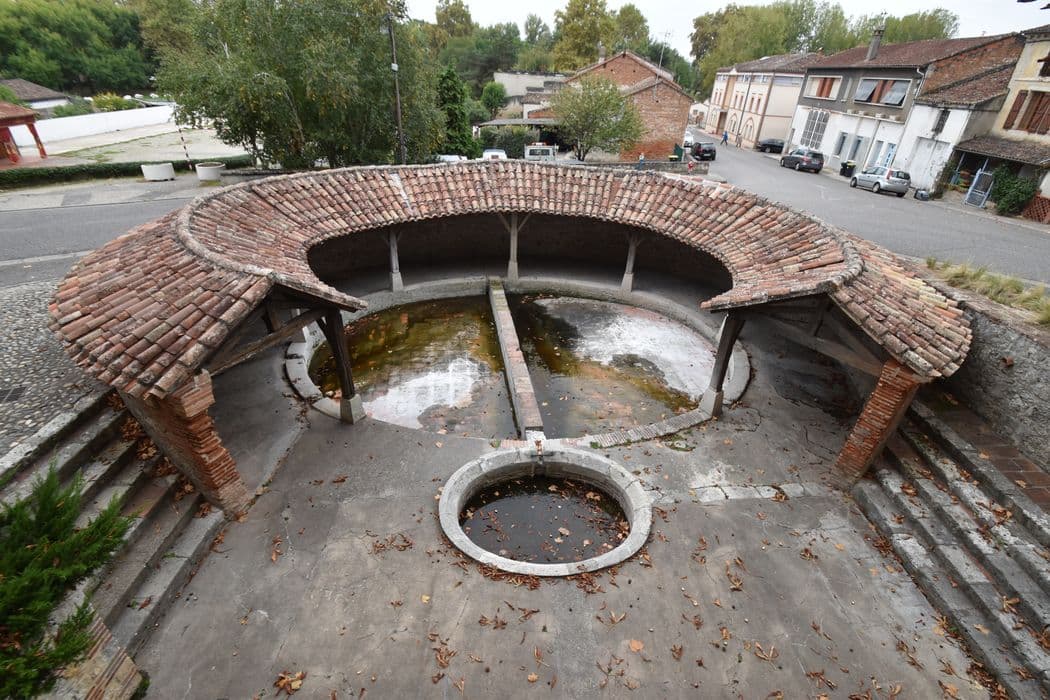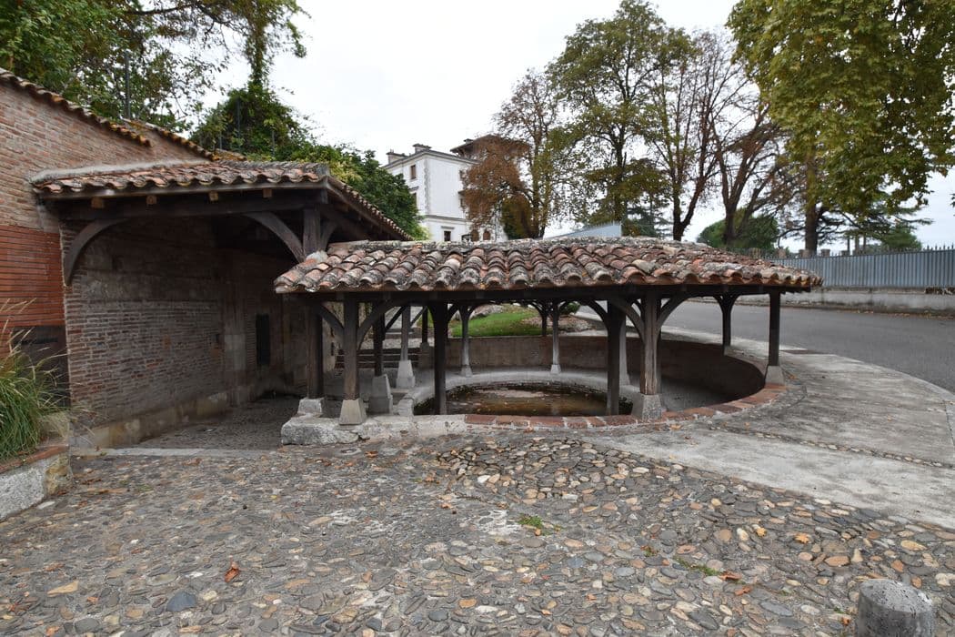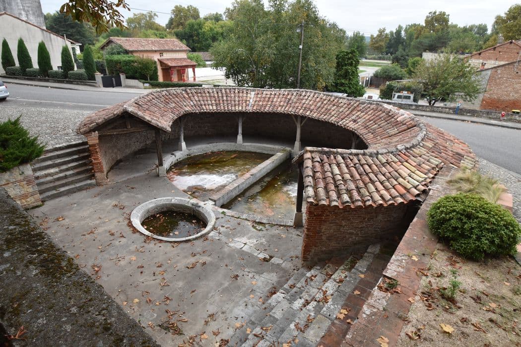 Le lavoir est établi au sortir d'une source abritée par un portique à trois arcades, en charpente de bois couvert de tuiles canal. L'eau sourd d'un conduit émanant d'un réceptacle couvert par un portique de pierres et briques, encadré de deux pilastres de pierre et surmonté d'un entablement de briques. L'eau aboutit à un lavoir ovale se développant en galerie couverte sur charpente de bois, entourant un bassin de pierre.