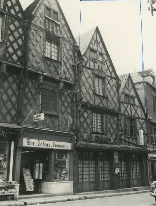 Cette maison a été construite après l'incendie de 1487. Après cette catastrophe, les maisons furent reconstruites en pan de bois mais avec des saillies de façade très peu prononcées pour éviter la transmission du feu d'un côté de la rue à l'autre. L'immeuble actuel est composé de deux maisons dont les pignons sur rue sont juxtaposés. Aux rez-de-chaussées, les anciennes boutiques médiévales ont été transformées en salle de restaurant à l'époque moderne. Les deux étages et les combles ont gardé en façade leur pan de bois apparent, formé de croisillons aux mailles losangées et serrées.