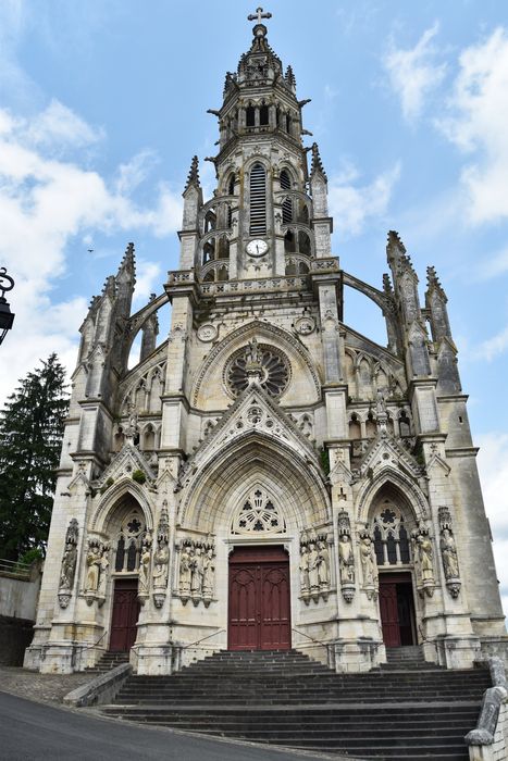Cette basilique a été commencée en 1869, terminée pour le gros-oeuvre en 1879, et en 1886 pour l'aménagement intérieur. Elle constitue un spécimen caractéristique du style néo-gothique ; elle a été édifiée sur les plans d'E. Marganne, architecte de la ville de Vendôme et du département du Loir-et-Cher, pour les fondations, et d'Auclair, architecte à Bourges, pour l'élévation. Le frère Hariolf, directeur de l'Ecole des Frères de Châteauneuf, dirigea le chantier.
