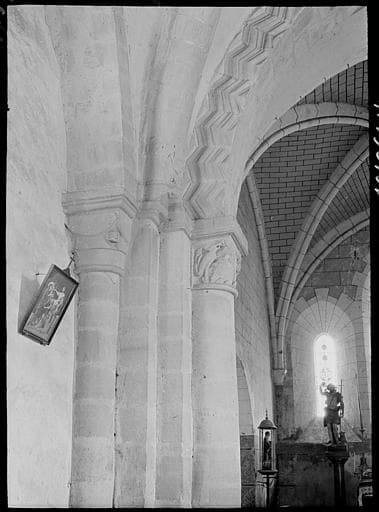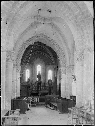 Le choeur a été repris au 14e siècle. La nef a été reconstruite en 1889. La travée précédant l'abside date du 12e siècle et supporte un petit clocher en charpente. Les chapiteaux sous le clocher présentent une figuration d'animaux et de têtes.