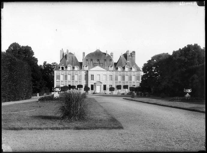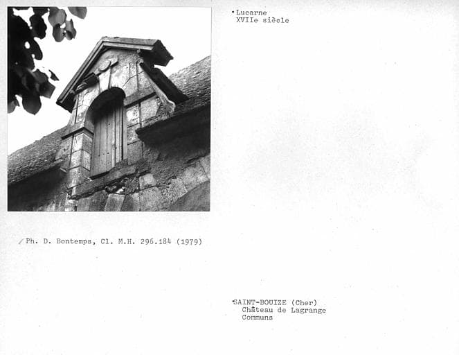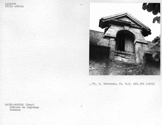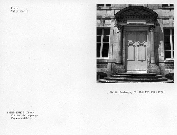 Le château est composé d'un corps central (avec une toiture à l'impériale) flanqué de deux pavillons. Sur cour, un perron semi-circulaire donne accès à une porte d'entrée au décor sculpté. Côté parc, on accède à la porte d'entrée par un escalier en fer à cheval orné de vases décoratifs. A l'est de la cour d'honneur, une basse-cour comporte hangar, grange, fenil, citerne, chenil et abreuvoir. Certaines de ces constructions ont des parements de bois découpé et un décor à claire-voie. Ce château est construit sur l'emplacement du château fort de Vèvre, mentionné en 1090. Il a été reconstruit vers 1500 pour François Estevard, bailli de Sancerre. De ce château détruit en 1569 par l'armée du duc des Deux-Ponts subsiste une salle voûtée située dans le bâtiment ouest des communs. Les circonstances de la construction du château actuel sont mal connues : selon les uns, nouveau château aurait été élevé à partir de 1595 pour Antoine de La Grange, seigneur d'Arquian, gouverneur de Berry durant les guerres de la Ligue. Celui-ci aurait vendu le château inachevé à son frère François de La Grange, seigneur de Montigny, gouverneur de Berry, grand maître de la cavalerie de France qui en aurait terminé la construction vers 1610. L'historien Buhot de Kersers réfute l'appartenance de la seigneurie de La Grange à cette famille. L'attribution à la famille de Buffevant (ou Buffevent) est plus probable, soit à Louis, seigneur de la Grange-Chaumont, gentilhomme ordinaire de la Chambre du roi en 1585, soit à Louis II, devenu gouverneur d'Auxerre, qui, en 1628, épousa Marie-Anne de Bretagne. L'aveu et dénombrement de la terre de La Grange rendu par ce dernier en 1640 mentionne le lieu et manoir ancien de ladite seigneurie. En 1639 est créé un parterre en compartiments et un jardin potager. En 1647, la famille Buffevent accueille saint Vincent de Paul à La Grange. En 1655, dans l'aveu et dénombrement rendu par Marie-Anne de Bretagne, veuve de Louis II de Buffevent ; le fief est décrit comme consistant en chastel, basse-cour, jardin.... Si la construction du château a pu intervenir entre 1640 et 1665, en revanche celle des communs semble antérieure et dater du règne d'Henri IV. En 1698, Paul de Grivel hérite de La Grange et fait modifier la décoration intérieure. En 1763, le château est acquis par François Brisson, président de la première chambre des enquêtes du Parlement de Paris. A t'on, au 18e siècle, doublé en profondeur le corps central en créant un vestibule couvert d'un dôme ? Le domaine est restauré sous la Restauration par le comte Jean-Pierre Bachasson de Montalivet, haut dignitaire de l'Empire puis ministre de l'Intérieur de Napoléon 1er, acquéreur de La Grange en 1807-1816 : pose des panneaux peints du cabinet de l'Amour de l'Hôtel Lambert, complétés par Alaux. L'un des deux ministres Montalivet fit remonter dans le vestibule les lambris au décor Rocaille avec les dessus-de-porte où sont posées des toiles peintes provenant de la salle à manger du château. Entre 1823 et les années 1840, on a procédé à la modification de l'entrée de la cour d'honneur, la démolition du bâtiment est de la basse-cour, à des modifications de la décoration intérieure du château (bibliothèque) , à la restauration du parc, la construction de bâtiments d'exploitation dans la basse-cour et de la maison-portière, dues à Camille de Montalivet, ministre de l'Intérieur de Louis-Philippe puis ministre de l'Académie des Beaux-Arts entre 1830 et 1865.