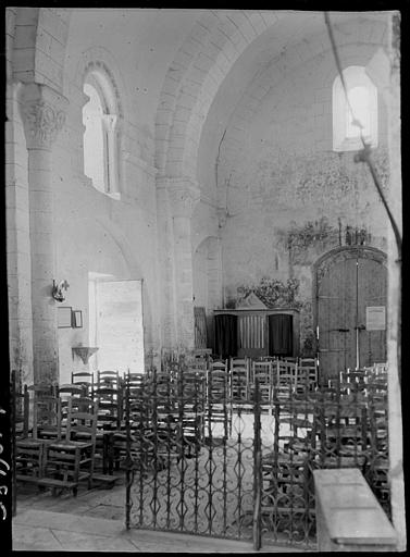 L'église se compose d'une nef de trois travées, sans bas-côtés ; d'un double transept avec croisée centrale sur laquelle repose le clocher ; de deux absidioles de transepts et d'un sanctuaire sur plan demi-circulaire, précédé d'une courte travée droite formant choeur. La nef est couverte par un berceau ogival avec doubleaux de même forme. Le reste de l'édifice est voûté en berceau plein cintre, à l'exception du transept nord dont la voûte d'ogive sur nervures a été refaite au 15e siècle, et des absidioles et de l'absides voûtées en cul de four. Si l'ensemble est daté du 12e siècle, l'édifice subit toutefois des transformations au 15e siècle : reconstruction des contreforts de la nef en les renforçant ; agrandissement des fenêtres des absides ; réfection de la voûte du transept nord ; établissement du tombeau dans le mur nord de ce transept. La fenêtre de l'abside centrale conserve un important reste de vitrail du 15e siècle.