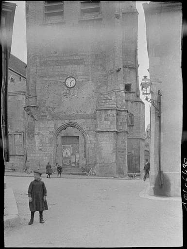 Bon exemple d'hôtel de ville-beffroi élevé en 1509. A l'origine, le beffroi était isolé. Une église moderne lui a été adossée. Le mur du beffroi est percé d'une ouverture et un escalier a été établi pour accéder à une pièce qui forme une dépendance de l'église et qui est ménagée dans la voûte de l'ancienne salle du rez-de-chaussée, séparée par un plancher moderne au niveau du cintre de la voûte. L'escalier primitif qui desservait les divers étages de la tour est placé sur l'angle de droite opposé à l'entrée. Au premier étage se trouve une grande pièce carrée qui était voûtée comme celle du rez-de-chaussée, mais dont la voûte a été détruite. C'était la salle des échevins ou des délibérations municipales. Elle contient une cheminée monumentale à moulurations, éventrée au début du 20e siècle lors de la pause de l'horloge.
