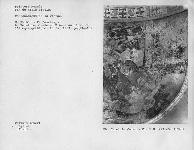 Prieuré-cure dépendant de l'abbaye bénédictine de femmes de Charenton-du-Cher, supprimé en 1503. La paroisse qui y était annexée subsista jusqu'à la Révolution. L'église fut alors vendue comme bien national. La nef fut convertie en habitation particulière. Le choeur et l'abside furent utilisés comme chapelle funéraire privée. L'édifice se divise en trois parties bien distinctes : une nef unique qui ne semble pas avoir reçu de voûte et dont la construction paraît dater de la seconde moitié du 12e siècle ; la travée de l'ancien clocher qui peut appartenir à la même campagne de construction, couverte d'une coupole sur trompes, et le choeur voûté en berceau légèrement brisé, élevé à la fin du 12e siècle ou au début du siècle suivant. Une grande peinture murale représentant le couronnement de la Vierge occupe le cul de four de l'abside. Dans un médaillon à huit lobes, le Christ et Marie sont assis côte à côte. Le Christ couronne sa mère. Autour de la Gloire sont groupés des anges musiciens sur deux registres. Cette peinture paraît dater de la fin du 13e siècle.