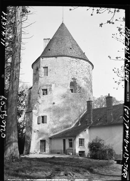 Le château fut élevé au 14e et 15e siècle par Jacquelim Trousseau puis par son fils Jacques. Seule une tour qui flanquait le château au sud-est subsiste. Elevée sur plan carré, cette tour renferme, au rez-de-chaussée, la chapelle. La tour comprend deux salles superposées au-dessus de cette chapelle, et une au-dessous. La chapelle est voûtée sur croisée d'ogives. Les nervures retombent sur des culots ornés de personnages. La voûte et les murs sont ornés de fresques (Couronnement de la Vierge, Sainte Trinité, Evangélistes, Jugement dernier, Crucifixion...). Dans le mur nord, un couloir conduisait aux latrines portées en encorbellement à l'extérieur.