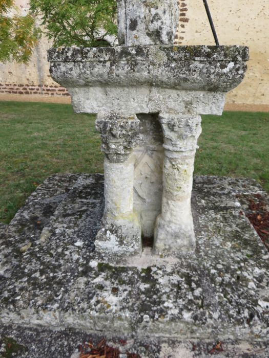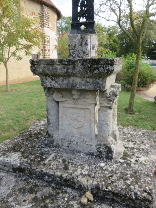 La croix moderne repose sur une base du 16e siècle, constituée par un bloc de pierre parallélépipédique accompagné, sur deux de ses côtés, de deux colonnes ayant base et chapiteau avec corbeille de feuillage, soutenant deux étages de dalles. La plus haute forme entablement. Sur une face du massif se voient les armoiries de la famille des Personnes, seigneurs de Villemesle. Ce calvaire a été donné par un membre de cette famille.