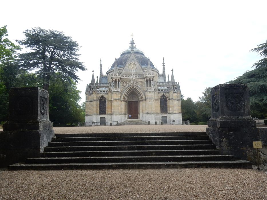 Edifice du 19e siècle, couronnant un ensemble de remparts du 14e siècle, servant de sépulture royale de la famille d'Orléans. En 1775, Louis XVI cède le comté à son cousin, Louis de Bourbon, duc de Penthièvre, qui fit transporter dans la collégiale les corps des membres de sa famille, auparavant inhumés à Rambouillet. Après 1793, les tombes furent ouvertes et les dépouilles enterrées dans une fosse. En 1798, la collégiale et une partie du terrain furent vendues nationalement à un marchand qui entreprit la démolition des bâtiments et revendit le terrain. A l'endroit de la fosse, le nouvel acquéreur fit poser une tombe de pierre. Après son retour d'exil, la duchesse d'Orléans acquit le terrain et fit construire par Cramail une chapelle néo-classique sur l'emplacement de la fosse commune. Devenu roi, son fils fit agrandir la chapelle en style néo-gothique par Lefranc.