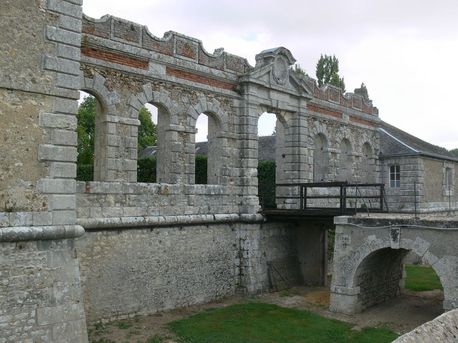 Façade Sud ; pont ; douves ; façades et toitures du pavillon d'angle Sud-Ouest (cad. E 275) : classement par arrêté du 31 décembre 1976 ; Façades et toitures de l'ensemble agricole (cad. E 377, 378) : inscription par arrêté du 31 décembre 1976