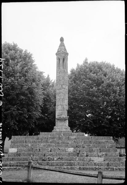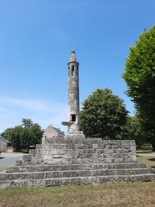 Colonne dressée sur une plate-forme carrée dont l'accès se fait d'un seul côté. La colonne se compose d'une base circulaire sur socle carré avec griffes aux angles ; d'un fût cylindrique de cinq mètres de haut ; d'un couronnement conique faisant saillie à sa base sur le parement de la colonne. Ce cône est décoré d'écailles et se terminait autrefois par un fleuron remplacé par une croix. Sous la partie conique, la colonne est évidée d'ouvertures destinées au passage de la lumière du fanal qui était suspendu au plafond du cône. Une des assises du fût s'avance en forme d'autel, faisant face aux gradins. A la hauteur de la table est percée une ouverture carrée avec feuillure extérieure destinée à recevoir une porte. Derrière la colonne, une saillie mutilée semble indiquer qu'une tablette de pierre soutenue par un cul de lampe a dû servir de crédence pour la célébration de l'office. La plateforme est entourée de tombes.