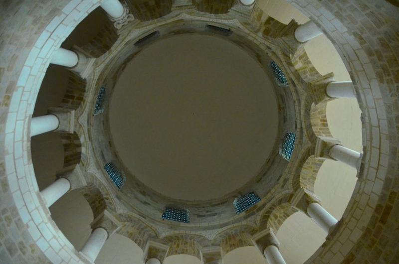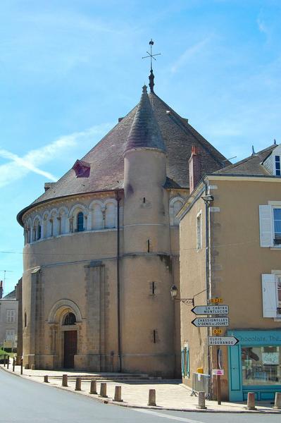 Fondée dans les premières années du 12e siècle, l'église offre une analogie avec les édifices orientaux, et particulièrement avec l'église du Saint-Sépulcre. Elle fut construite par Geoffroy le Noble, baron de Châteauroux, qui avait pris part à la première croisade. Une église primitive existait à cet emplacement. Dans son plan primitif, l'église se composait d'une rotonde qui devait être surmontée d'une coupole. Autour, règne une nef circulaire, formée de onze travées dont les nervures viennent retomber sur onze piliers cylindriques qui soutiennent la partie centrale de l'édifice, et sur autant de colonnes engagées dans les murs extérieurs. Au-dessus de cette nef, règne une galerie qui s'ouvre sur la rotonde centrale par quatorze arceaux soutenus par quatorze colonnettes. Au-dessus de ces constructions devait s'élever la coupole centrale qui n'a jamais été construite. Les chapiteaux s'ornent de feuillages, d'animaux fantastiques, de têtes grimaçantes...