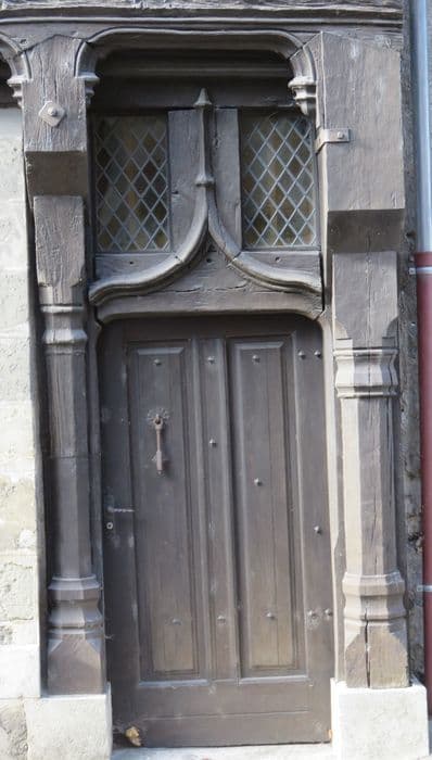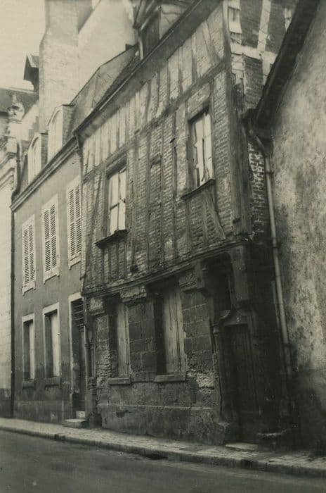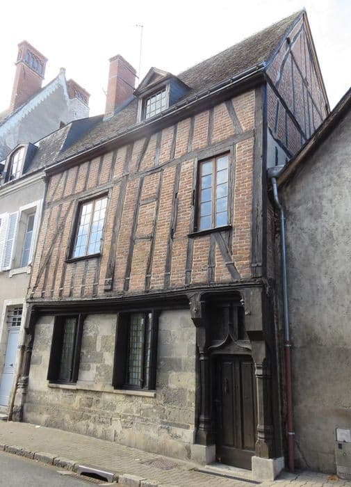 Maison à pans de bois, postérieure au lotissement de 1490. Sur un rez-de-chaussée en pierre, l'étage supérieur est en encorbellement et construit en bois et brique. La porte, accostée de deux poteaux moulurés, et surmontée d'une accolade.