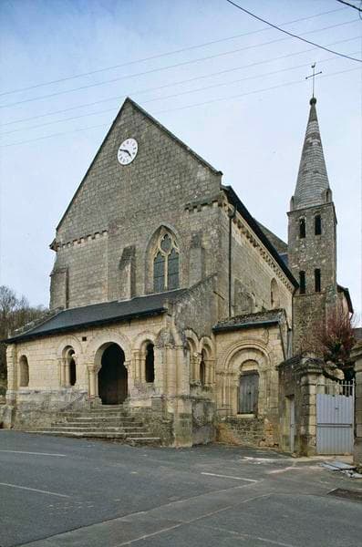 Eglise reconstruite au 13e siècle dans le style angevin, mais ayant conservé son porche du 12e.