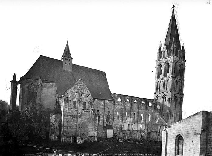 La construction de l'église remonte au début du 16e siècle. Elle fut bâtie sur les ruines d'une ancienne abbaye fondée vers 1010 par Foulques Néra, comte d'Anjou, qui y fut enterré en 1040. Clocher roman.