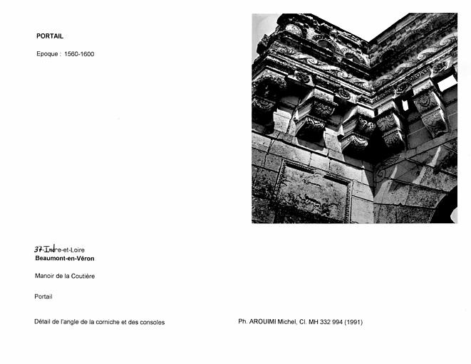 Ancienne ferme dépendant du prieuré de Beaumont-en-Véron. Cette ferme conserve un portail d'entrée surmonté d'une galerie qui devait limiter un chemin de ronde, et quelques vestiges de façades sur la cour présentant une décoration originale de pilastres et motifs sculptés. Ces parties, qui appartiennent au 16e siècle, peuvent être soit les vestiges d'un ensemble aujourd'hui démoli, soit les prémices d'une ferme somptueuse dont la construction a été abandonnée en cours d'exécution. Au nord-est de la cour se trouvent les restes de l'ancienne chapelle.