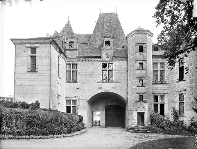 Château construit au 16e siècle sur une ancienne porte fortifiée flanquée de deux tours. Sa disposition générale semble avoir été subordonnée à l'utilisation des constructions antérieures. L'ensemble de la porte médiévale était couronné de créneaux, mâchicoulis et échauguettes. La partie centrale de la porte est percée, au rez-de-chaussée, de deux ouvertures sous porche voûté, donnant accès à la cour terrasse où se trouvent les corps de logis. La porte a ensuite été exhaussée. A l'aile gauche, un avant corps a été ajouté au 16e siècle, ainsi qu'une petite tour octogonale, en partie engagée dans la porte. Près du vieux château se trouvent les restes de deux grosses tours entre lesquelles s'élève le château moderne.
