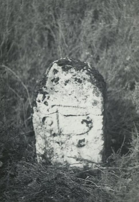 Bornes délimitant l'ancienne propriété de l'abbaye de Marmoutier donnée par Charlemagne. L'une des bornes conserve quelques traces d'emblêmes très mutilés.