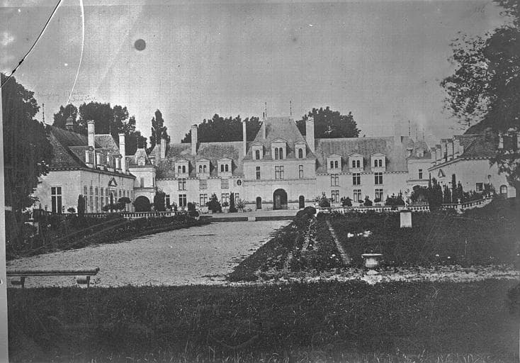 Le château égalait celui de Richelieu, ce qui causa sa destruction. Il fut commencé par Louis Ier de bourbon et achevé par Louis II, premier duc de Montpensier. En 1625, Marie de Bourbon l'apporte en dot à Gaston d'Orléans. En 1635, le duc d'Orléans est invité par le Cardinal à échanger Champigny pour la seigneurie de Bois-le-Vicomte, et le contrat stipule que le château sera rasé à la réserve des servitudes. Seule la chapelle échappe à la destruction, le pape Urbain VIII qui y a officié, refusant son autorisation. En 1656, la restitution est obtenue par la fille de Gaston d'Orléans. Des réparations sont faites sur les communs, utilisés comme habitation principale. Ces communs, avec quelques murs d'enceinte, sont les seuls restes du château construit par Louis de Bourbon. Ce sont trois corps de bâtiments en équerre entourant l'ancienne basse cour. Celui du centre présente deux étages avec, en son milieu, un pavillon surélevé et en saillie et, à chaque extrémité, deux tours d'angle cylindriques couvertes d'un toit en coupole, surmonté d'un lanternon. La chapelle a été achevée vers 1540. J. Guillaume date le porche de 1549 (date inscrite à l'intérieur du porche) et non de 1570, il serait donc contemporain des bâtiments subsistants de l'avant-cour (datés de 1545 par une clef de voûte des écuries). Les vitraux de la chapelle sont un témoignage exceptionnel de l'art du vitrail du 16e siècle.