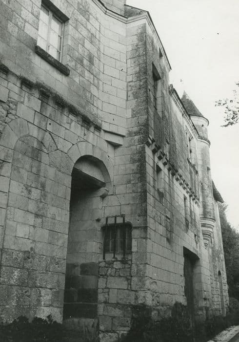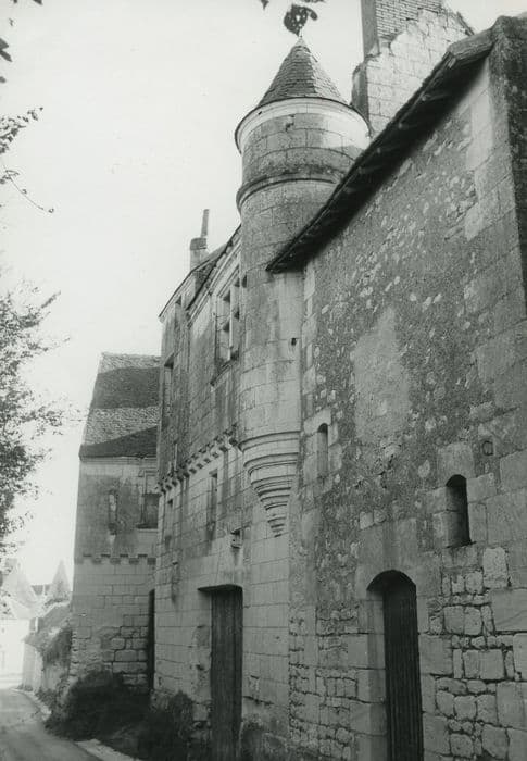 Maison située sur une ancienne voie qui traversait le bourg du nord au sud. La partie en retour du bâtiment encadrait la porte du village. Une longue façade à l'est présentant un premier étage légèrement en encorbellement, et un bâtiment en équerre sont éclairés de fenêtres à croisées de pierre. Les pierres d'entablement sont sculptées. Au nord, une échauguette ronde est posée en cul de lampe et percée de meurtrières.