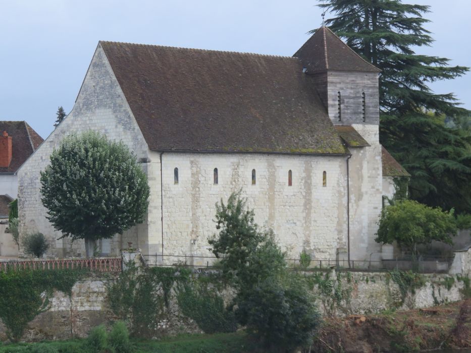 Cette église est le seul édifice conservé de l'ancien château de la Haye (démoli). Fondée en 1104, il s'agissait d'une chapelle castrale, devenue église paroissiale de 1220 à 1789. Elle est constituée d'une nef qui se continue par une travée sur plan carré qui, entourée d'arcades en plein cintre et voûtée d'une coupole sur pendentifs à base octogonale, supportait le clocher aujourd'hui disparu. Au sud, subsiste la tour d'escalier qui y conduisait. Le choeur, encore plus étroit, est voûté en berceau et terminé par une abside en cul de four. Par endroit subsistent des vestiges de peintures murales romanes (Christ en majesté au fond de l'abside et au centre de la voûte ; cavalier lancé au galop ; personnage battant du grain...). L'église a été agrandie au nord, au 13e siècle, par un collatéral. René Descartes y fut baptisé.