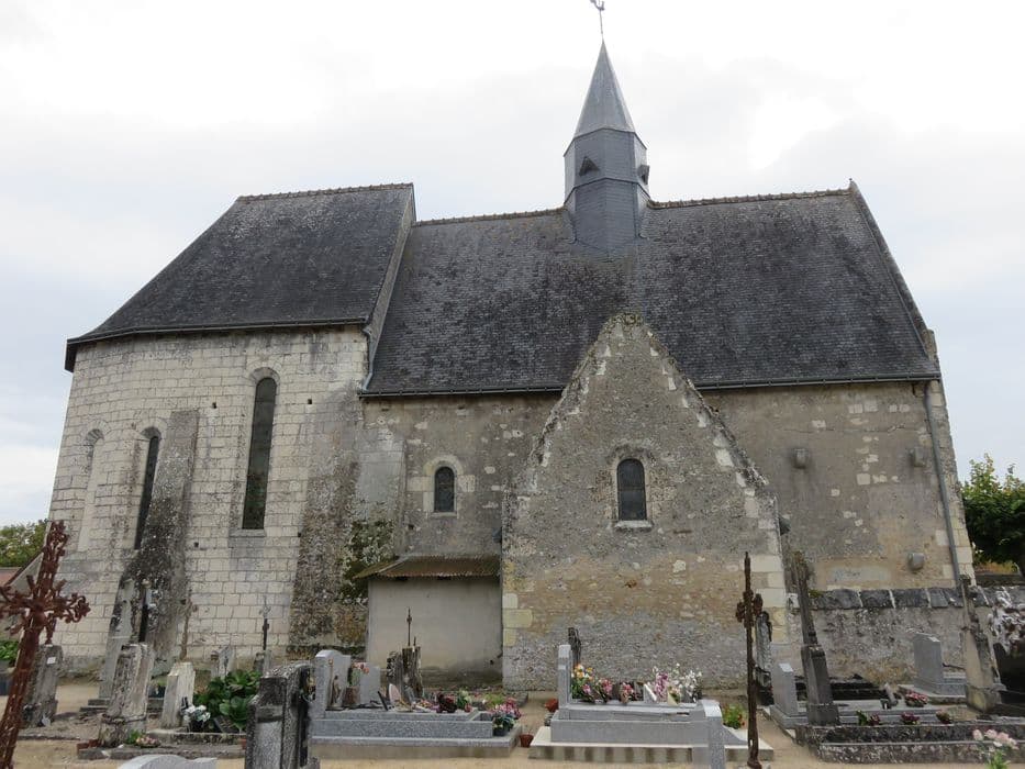 La façade ouest a été surélevée au 12e siècle. La porte en plein cintre garde sa décoration primitve de palmettes et de fleurs-hélices. La nef est couverte en charpente avec lambris. Des départs d'ogives témoignent d'un projet de voûtes resté inexécuté au 13e siècle. Le choeur et l'abside à sept pans, construits au 13e siècle, sont voûtés sur ogives et liernes, en style angevin. Aux clés figurent un évêque bénissant et la Vierge.