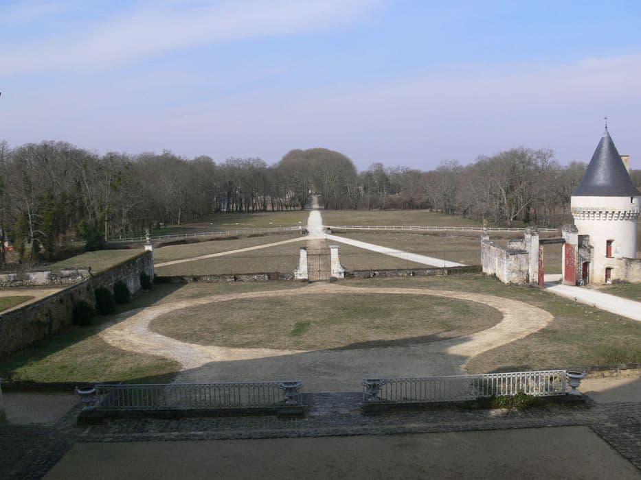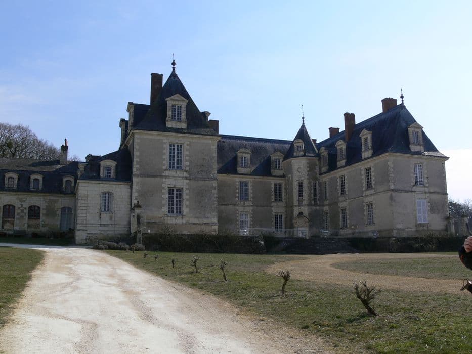 Châtellenie relevant de la seigneurie de Montsoreau, le château passa en 1330 à la maison des Du Bellay, qui bâtirent l'édifice actuel. La première forteresse fut achevée en 1415. Le château est précédé d'une cour d'honneur et de parterres qui s'inclinent vers une prairie limitée sur trois côtés par les douves et où se trouve l'entrée. A gauche se développent les bâtiments des communs ; à droite, une terrasse limitée par un ancien mur d'enceinte, puis le grand canal. En bordure de la cour des communs se trouve une tour cylindrique à mâchicoulis, vestige de la forteresse du 14e siècle. Le château comprend un corps de logis central et deux ailes en retour sur la cour d'honneur avec, dans les angles rentrants, deux tours polygonales d'escaliers à vis. Un bâtiment édififé à peu près à la même époque en bordure de la terrasse sud, est terminé par un pavillon rectangulaire plus élevé, affecté au logement des fermiers. Un autre bâtiment du 18e siècle relie le précédent au corps principal. Au nord se trouvent les communs avec une grande cour, deux corps de bâtiments en équerre, et une cour secondaire dont l'accès se fait par un passage voûté ouvert dans l'axe du bâtiment principal. A l'intérieur du château, le rez-de-chaussée conserve des boiseries des 17e et 18e siècles. Au premier étage, une salle a conservé les lambris, le plafond et la décoration peinte de l'époque de la construction. Sur les lambris alternent des scènes mythologiques, des bouquets de fleurs et des motifs portant le monogramme des Du Bellay. Une décoration analogue subsiste dans quelques pièces de l'aile sud et dans le couloir qui les dessert. Une grande galerie entièrement couverte de peintures occupe le premier étage du bâtiment 18e en retour vers l'est. Sont représentés les châteaux royaux, ainsi que le château de Gizeux mis en parallèle avec ces constructions.