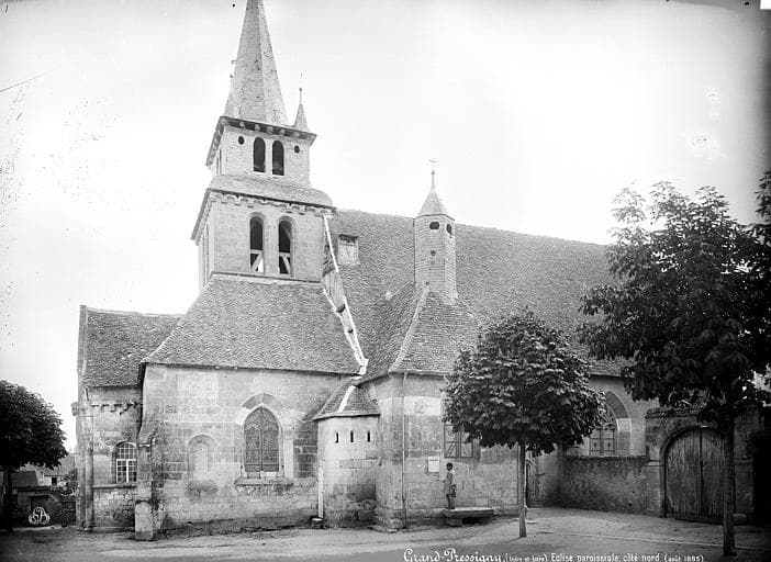 Le choeur et les trois travées qui le précèdent sont du 12e siècle. La nef et le bas-côté nord datent du 14e siècle, mais ont subi divers remaniements. Le clocher appartiendrait au 16e siècle et la flèche au 17e. L'abside a été modifiée au début du 20e siècle. Les fenêtres romanes, qui avaient disparu, ont été reconstituées, ainsi que les colonnettes ornant l'intérieur du choeur. La travée supportant le clocher possède une voûte en coupole sur plan rectangulaire.