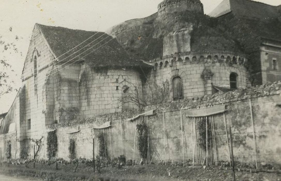 Il est possible que l'église dont subsistent les ruines ait été celle du prieuré Saint-Ambroise. Les Cordeliers ont dû être installés à l'Ile-Bouchard avant 1634, date indiquée comme étant celle de la création du monastère. Le bâtiment conventuel a été probablement construit dans les années qui ont suivi la réforme de 1634. De l'église du 12e siècle subsistent l'abside, le choeur, la croisée, les croisillons du transept et l'absidiole accompagnant le croisillon sud. La croisée du transept était couverte d'une coupole dont les chapiteaux sont ornés de personnages. Le croisillon nord a été noyé dans le bâtiment du 17e siècle. A l'intérieur, converti en scierie, subsiste un bas-relief du 12e siècle représentant des sirènes et des poissons, ainsi que des traces de fresques.