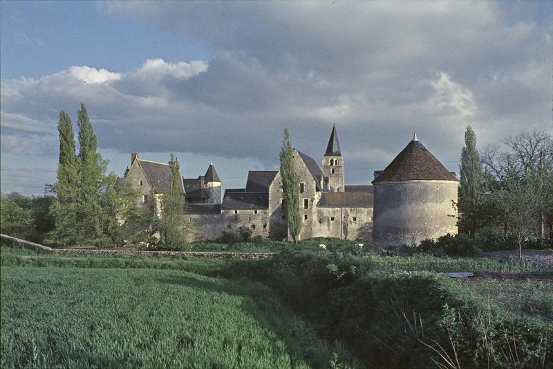 Le château fut fondé en 1228 par Hugues des Roches, abbé de Marmoutier. Il était fortifié et entouré de douves. A l'intérieur de l'enceinte se trouve l'église, ancien bénéfice de l'église de Marmoutier qui la tenait d'un don fait par Archambault, archevêque de Tours en 991. La partie la plus ancienne de l'édifice date de l'époque romane, de même que la tour beffroi qui la précède. La voûte en charpente est plus tardive, tirants et poinçons étant gothiques. Au 17e siècle, le chevet plat a été prolongé d'une abside à fond plat, plus étroite que l'église, couverte d'une voûte de pierre en anse de panier.